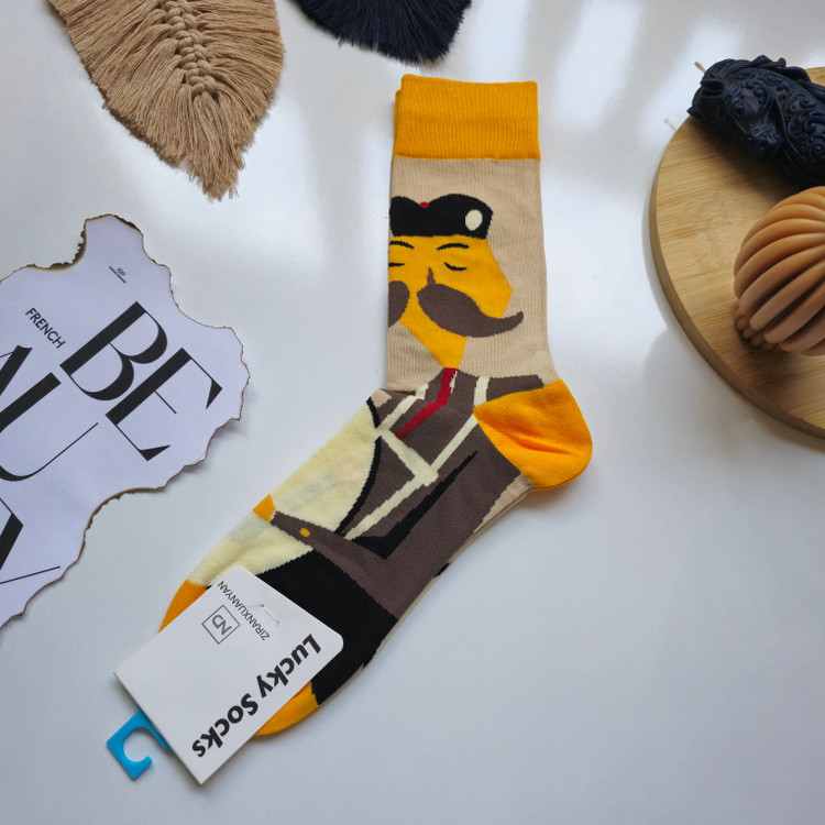 جوراب فانتزی ساق بلند نخ پنبه انگلیسی،طرح سیبیل،استایل خاص،آقای سیبیل،لاکچری،پاپیون شیراز