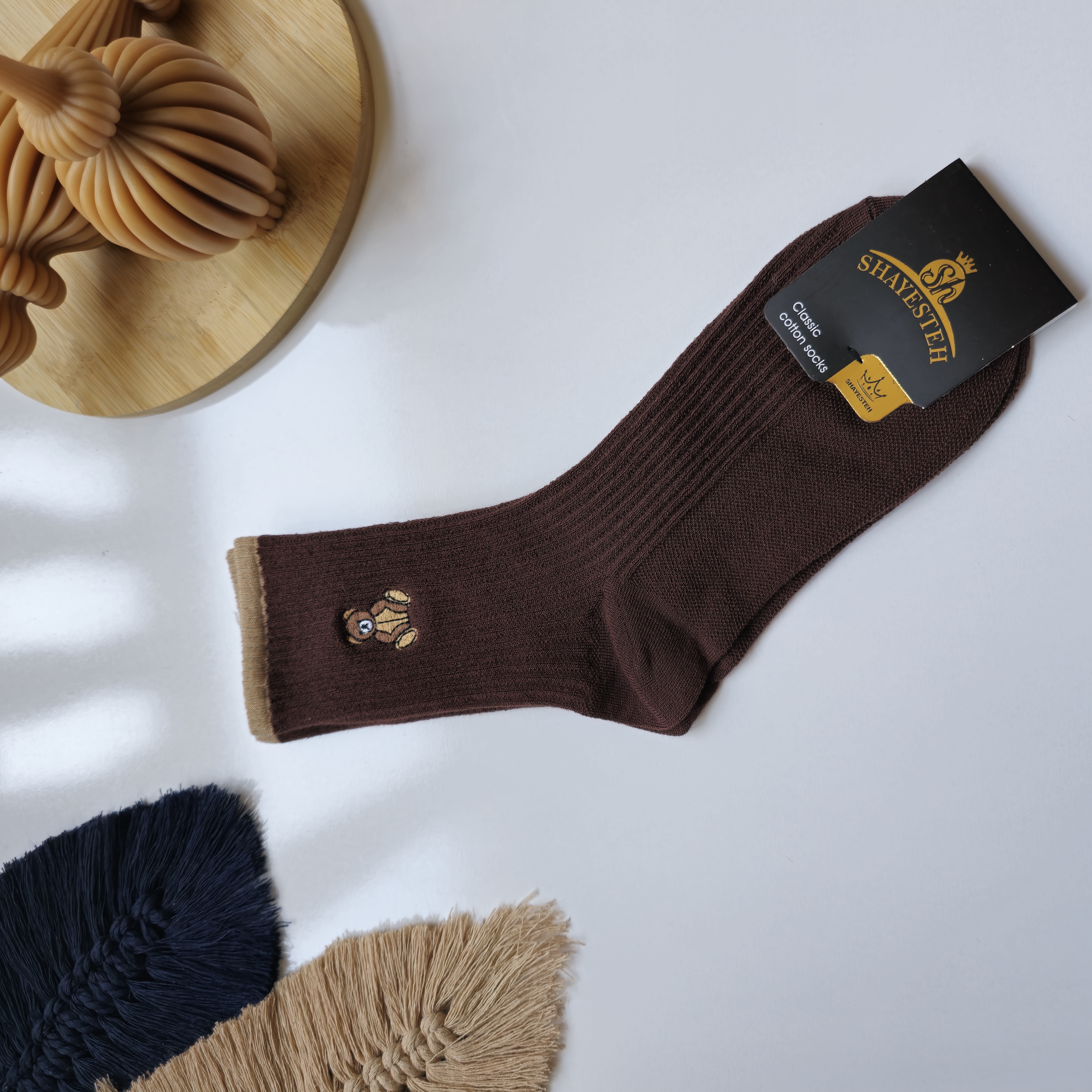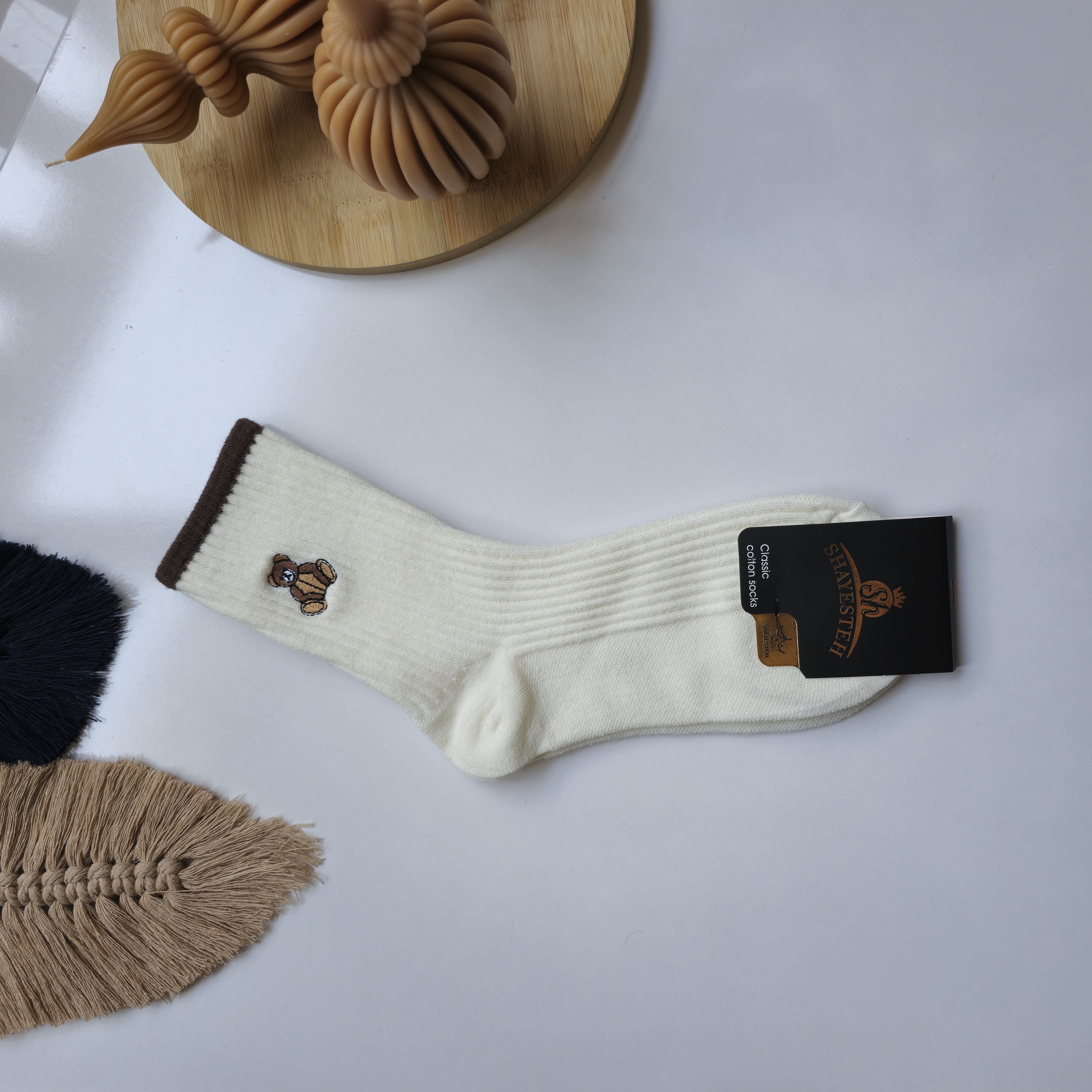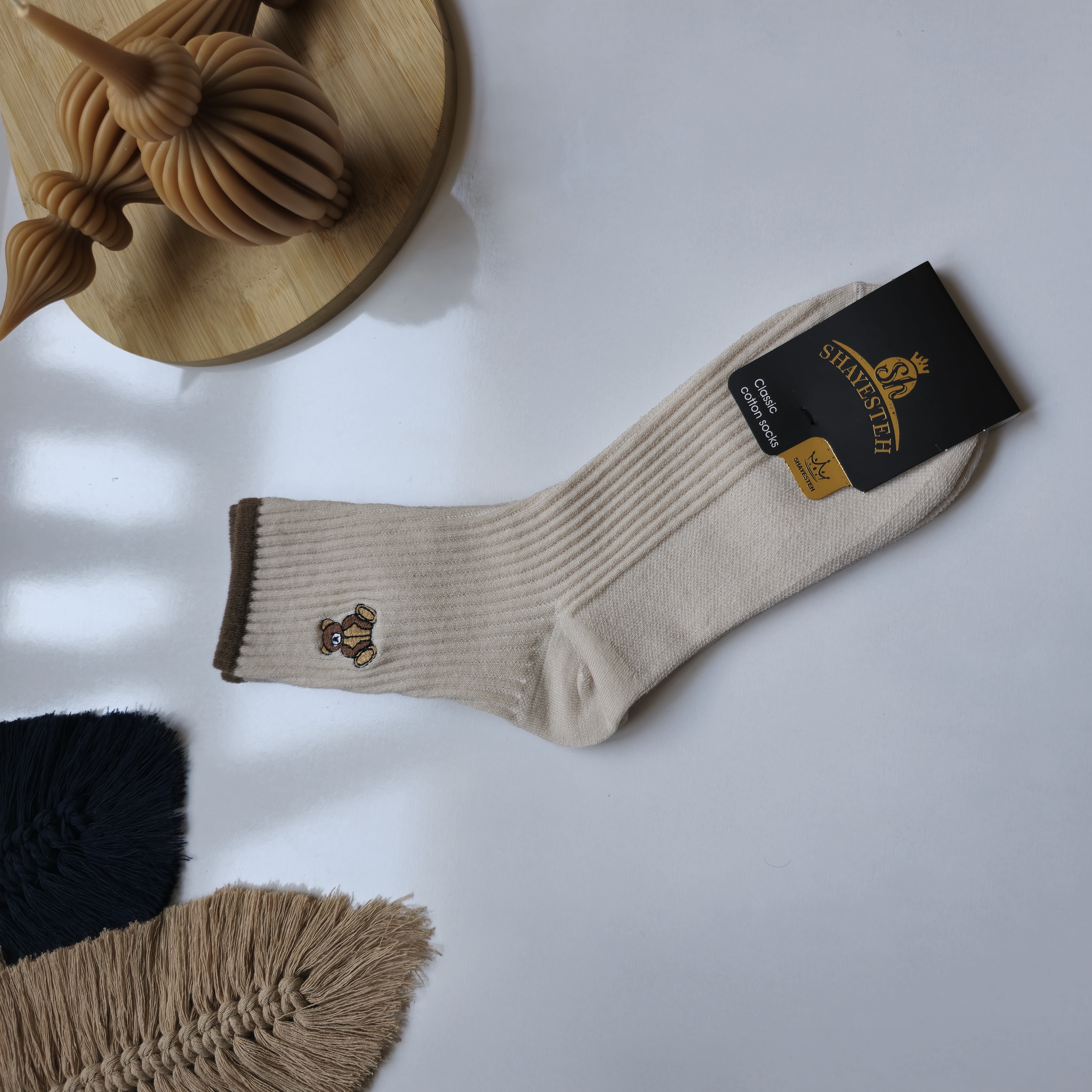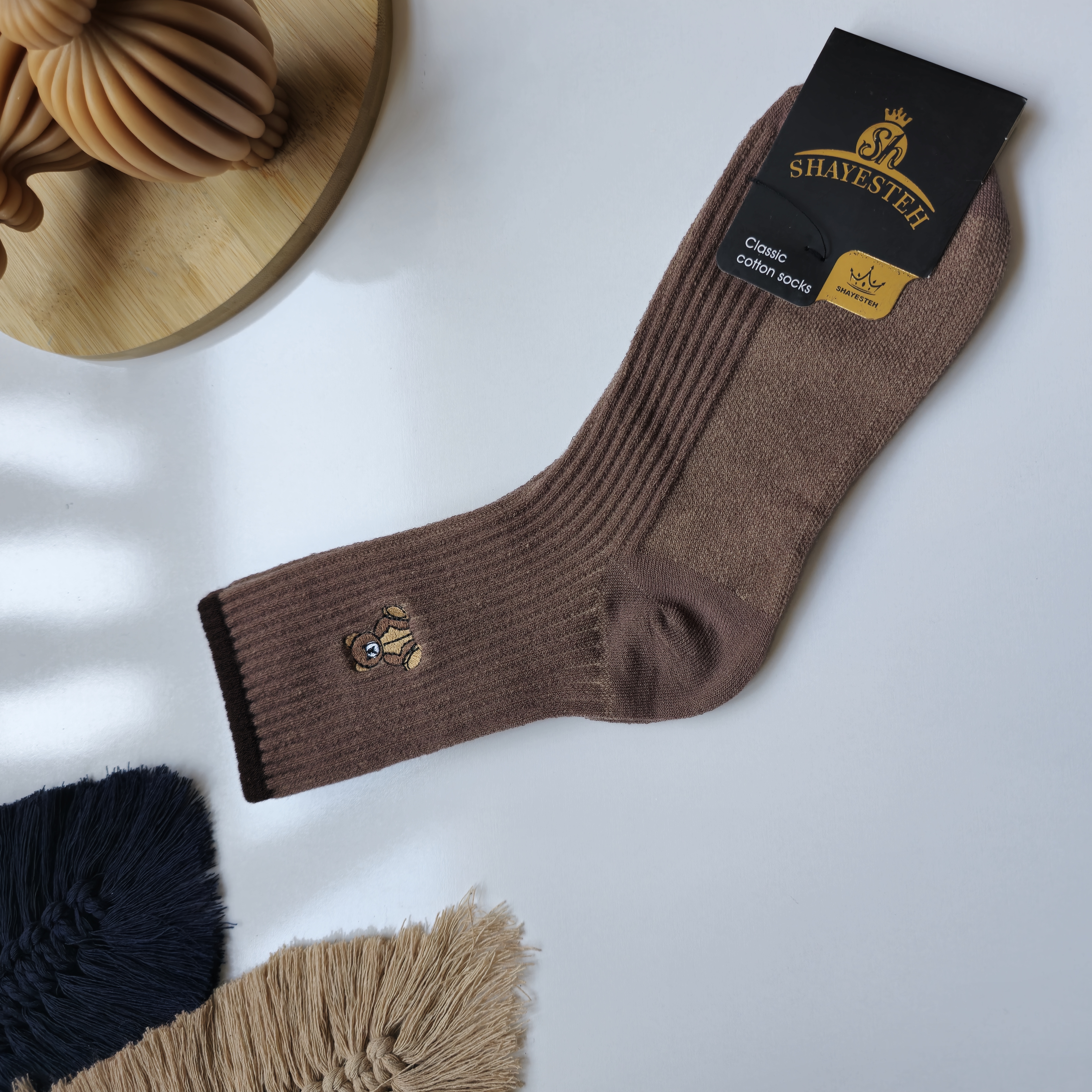 جوراب تدی زنانه،ساق بلند کبریتی،نرم و گرم ،با جزئیات زیبا،خرس کوچولوی مهربان،جوراب مینیمال شیک و ضخیم