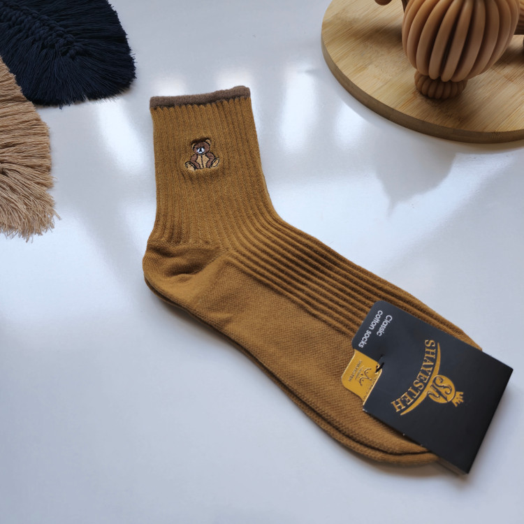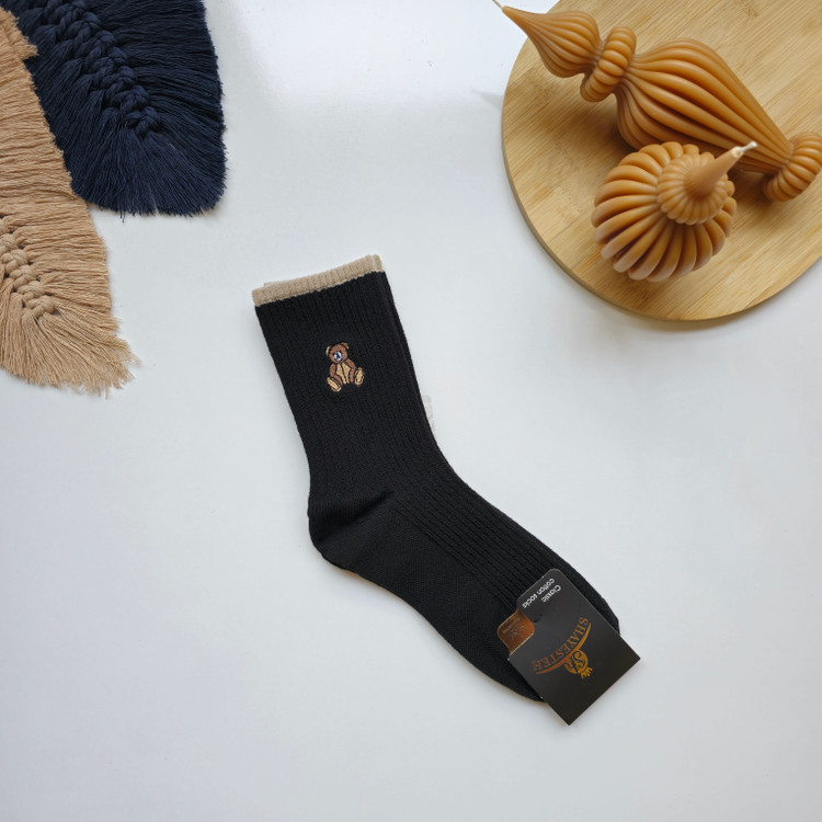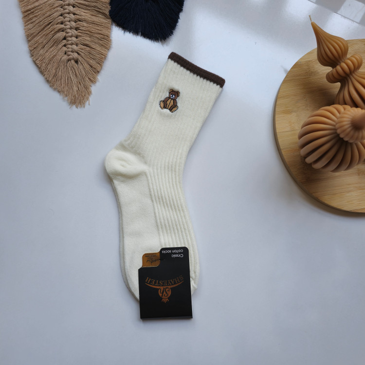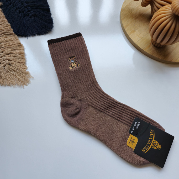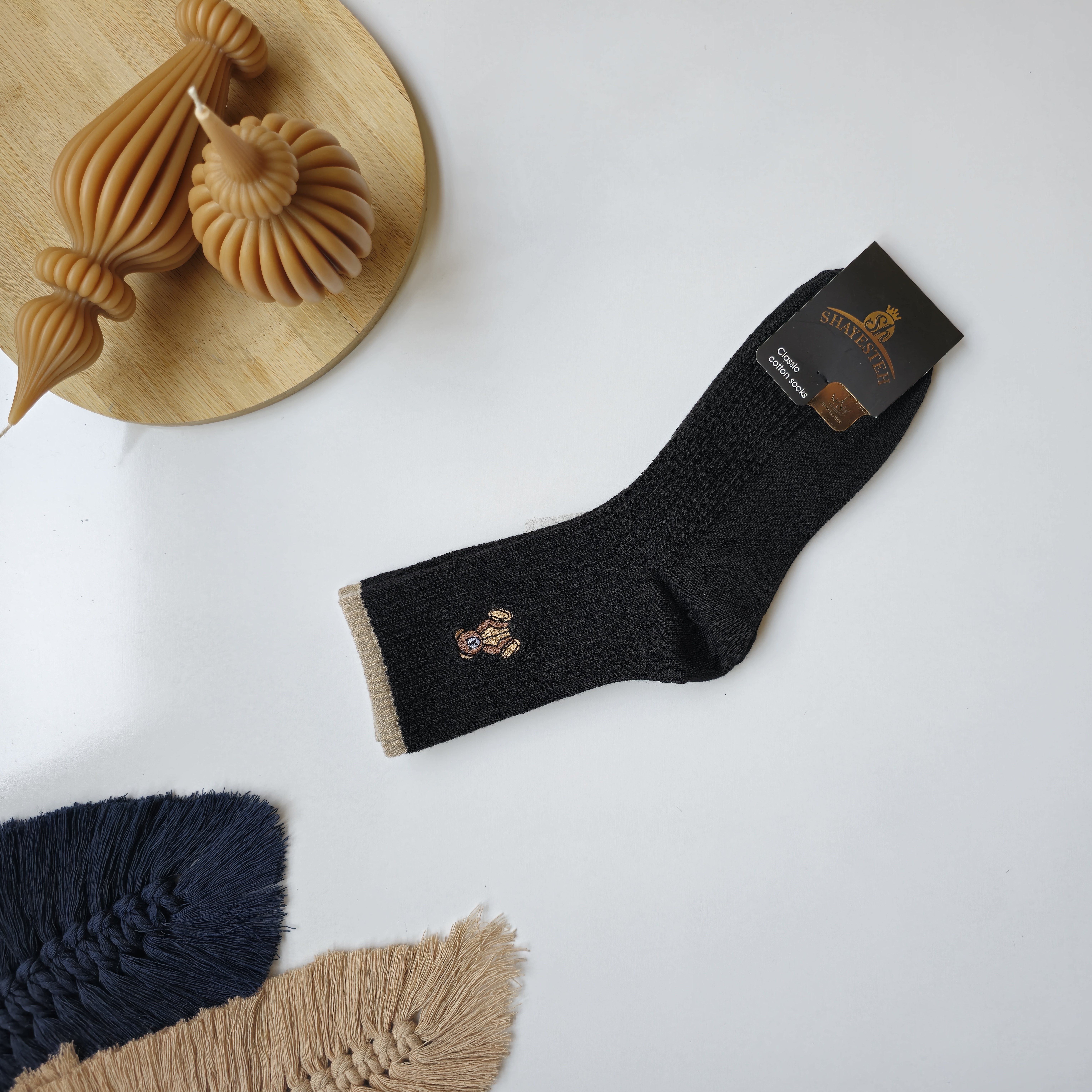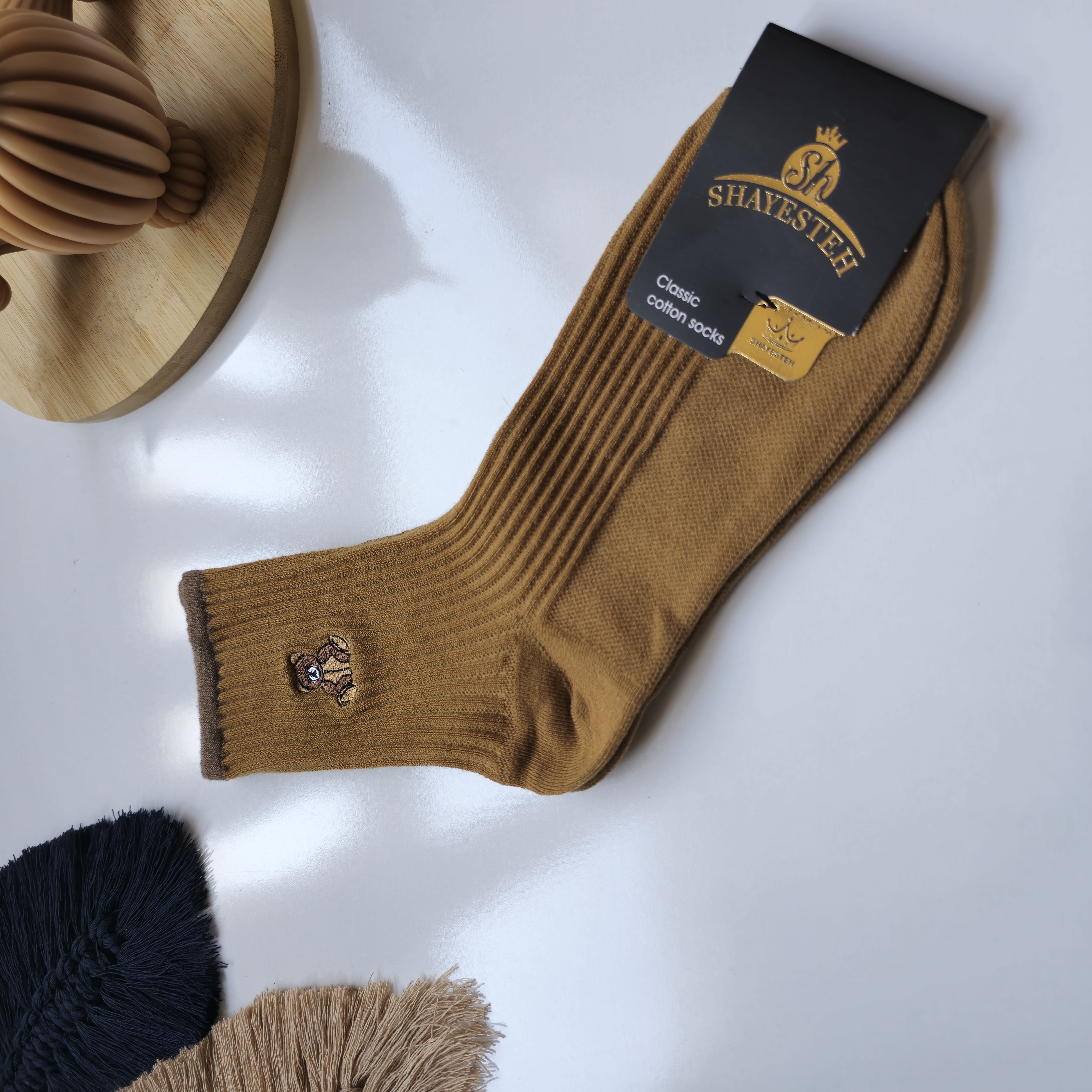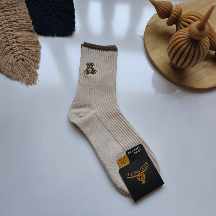 جوراب تدی زنانه،ساق بلند کبریتی،نرم و گرم ،با جزئیات زیبا،خرس کوچولوی مهربان،جوراب مینیمال شیک و ضخیم