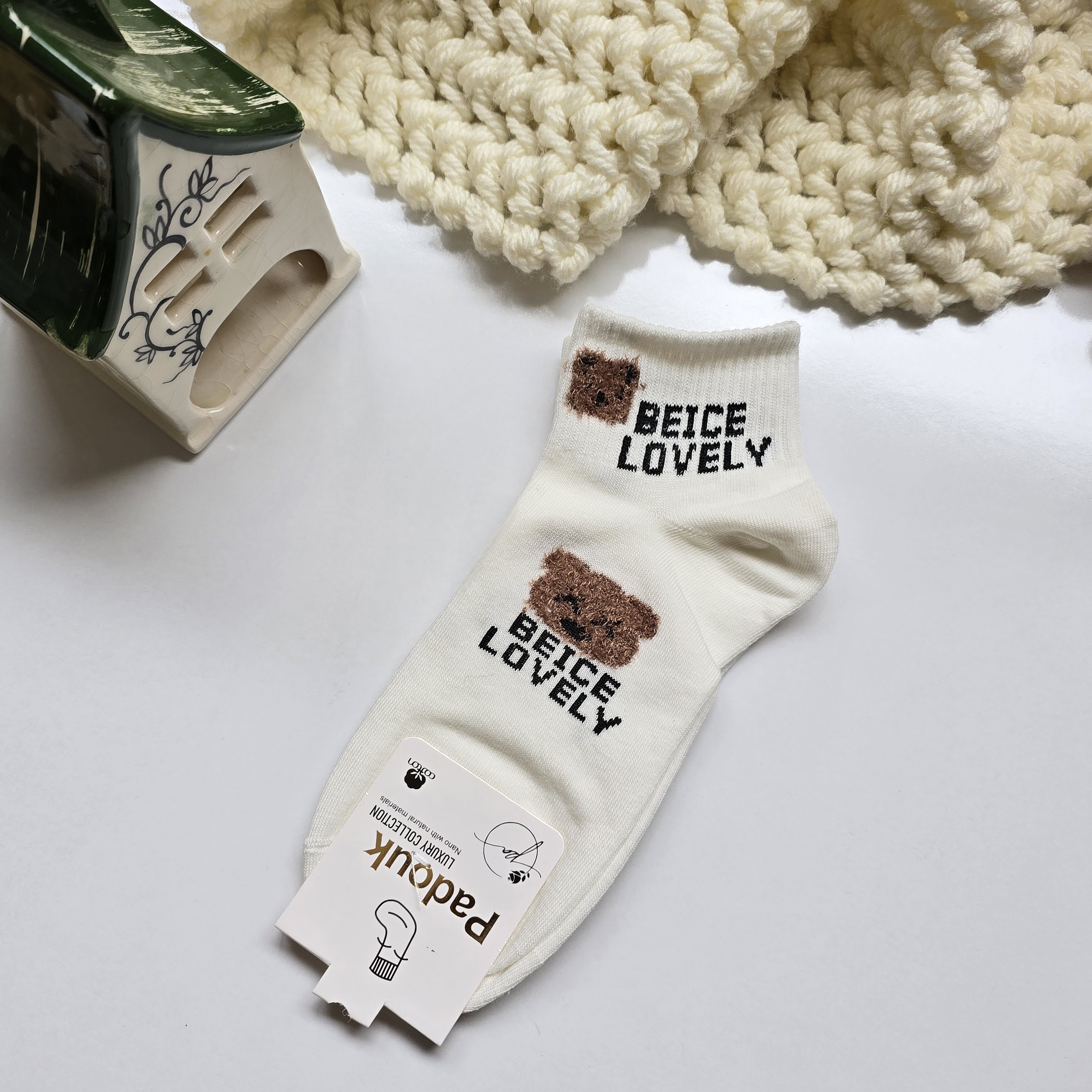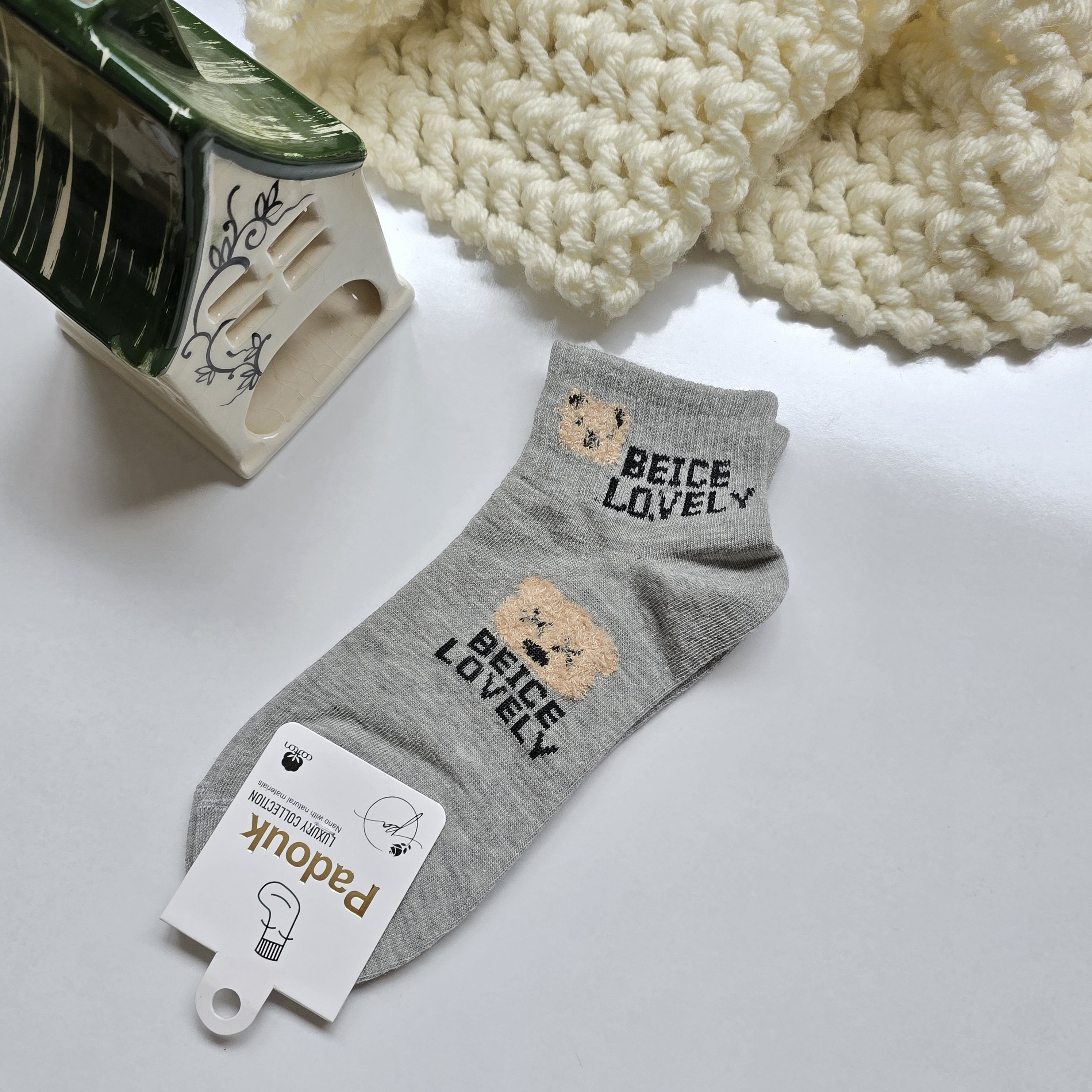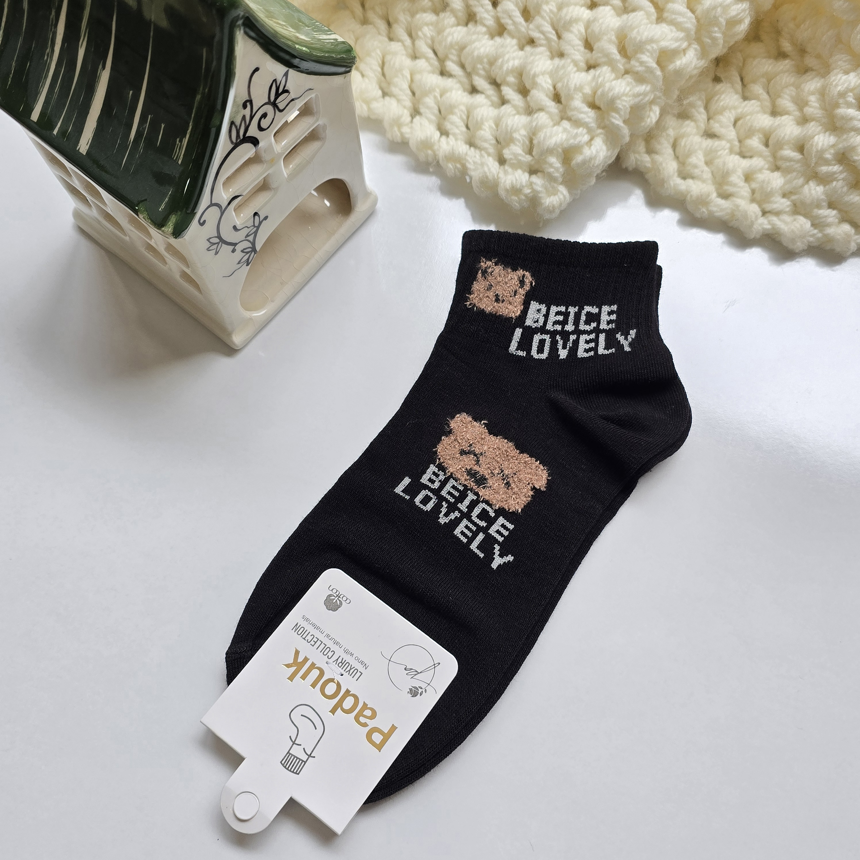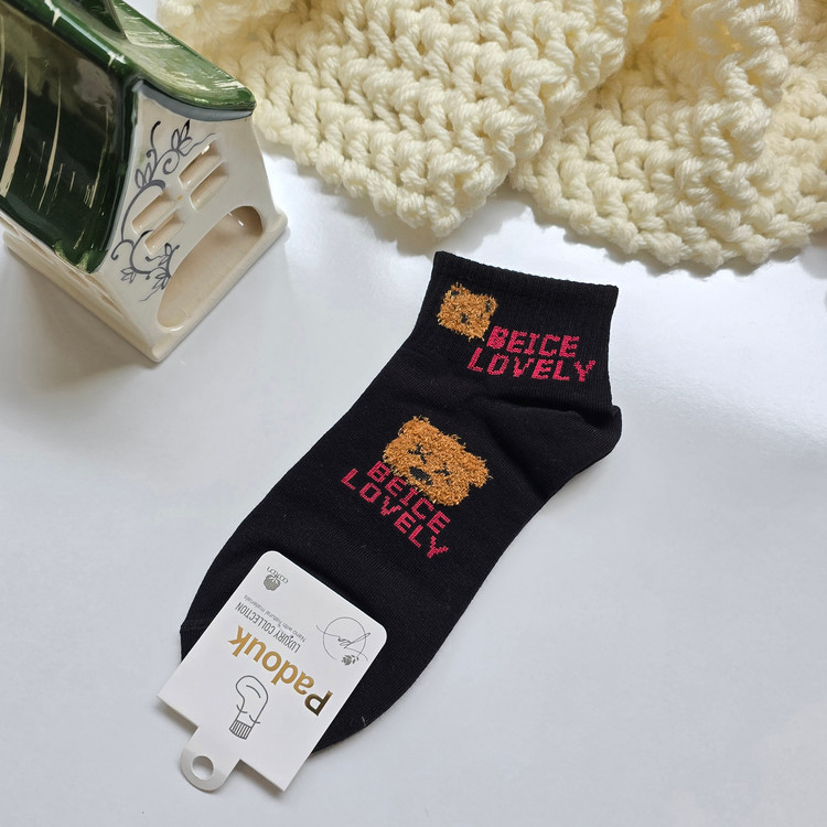 جوراب زنانه مچی نخ پنبه ،اقتصادی و مقرون به صرفه جهت استفاده روزمره،استایل شیک و مینیمال ،عروسکی تدی برجسته